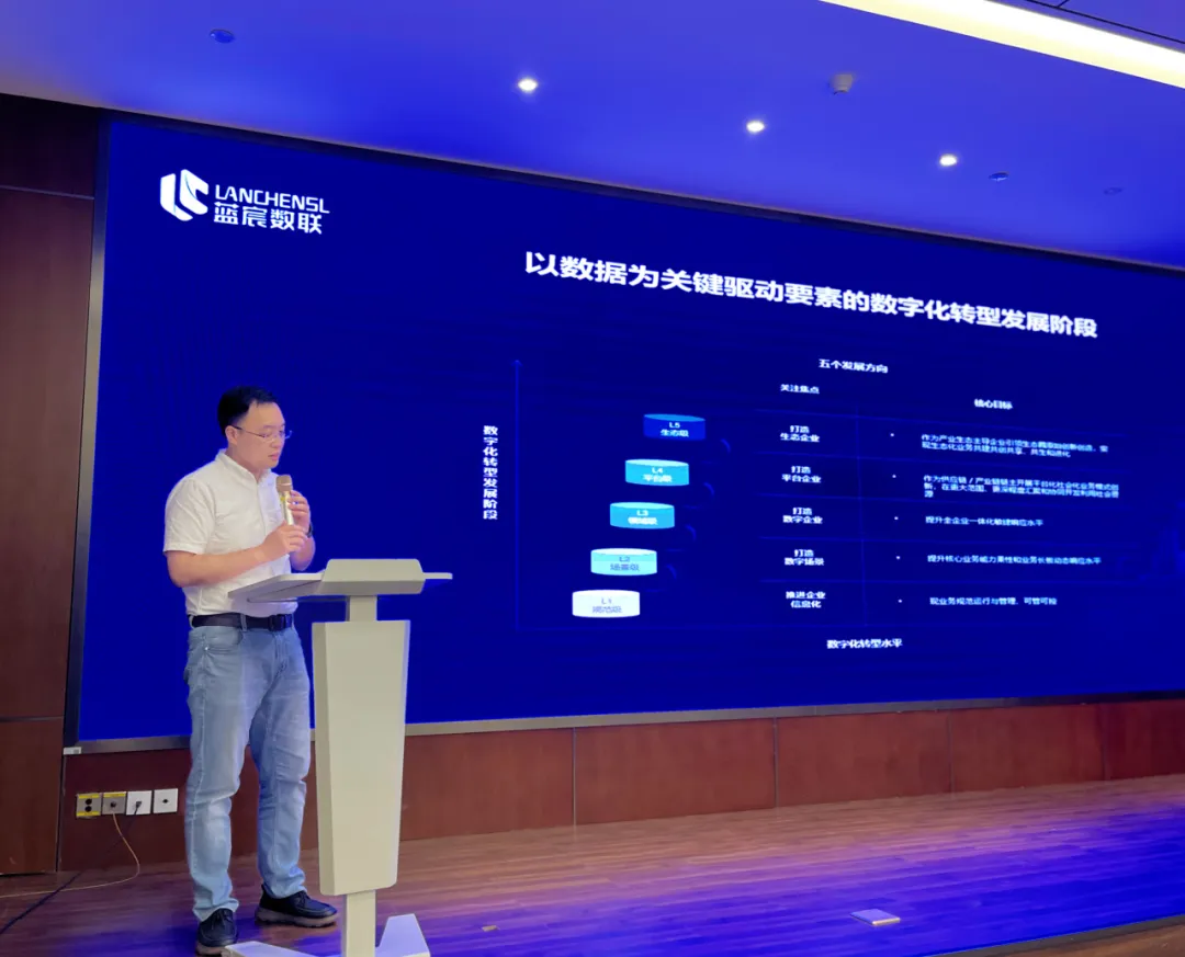面对建筑业普遍面临的人工成本上涨、工艺复杂度提升与监管要求趋严等挑战,数字化转型已成为行业发展的必然选择。会上,作为承办方的科技企业代表——蓝宸数联,系统阐述了其提出的“数产融合城市引擎”创新理念。