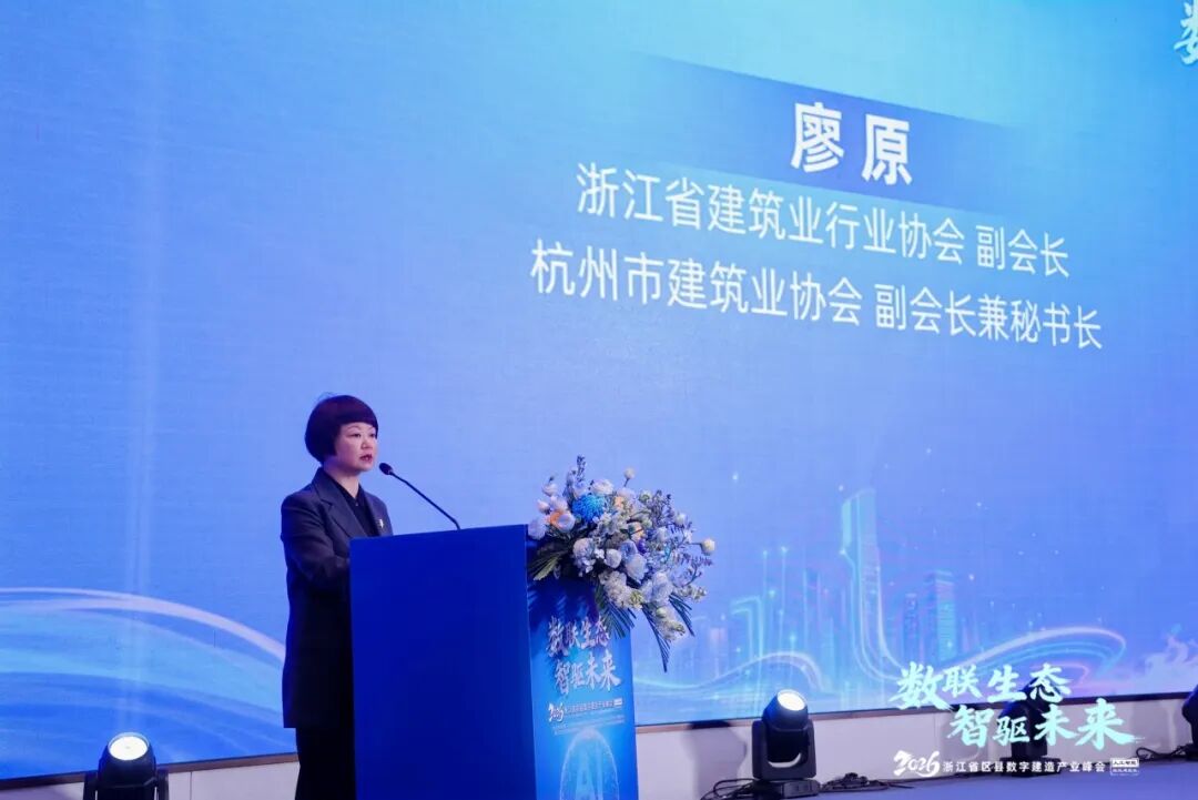 峰会伊始,浙江省建筑业行业协会副会长、杭州市建筑业协会副会长兼秘书长廖原做开场致辞,她表示数字建造早已不是浙江建筑业的“可选项”,而是浙江省破解行业痛点、培育新质生产力、推动建筑业高质量发展的“必由之路”,更是赋能区县建设、夯实共同富裕根基的核心抓手。